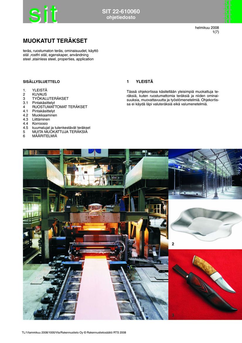 Tässä ohjekortissa käsitellään yleisimpiä erikoisteräksiä, kuten ruostumattomia ja haponkestäviä teräksiä ja niiden ominaisuuksia, muovattavuutta ja työstömenetelmiä. Ohjekortissa ei käydä läpi valuteräksiä eikä valumenetelmiä.