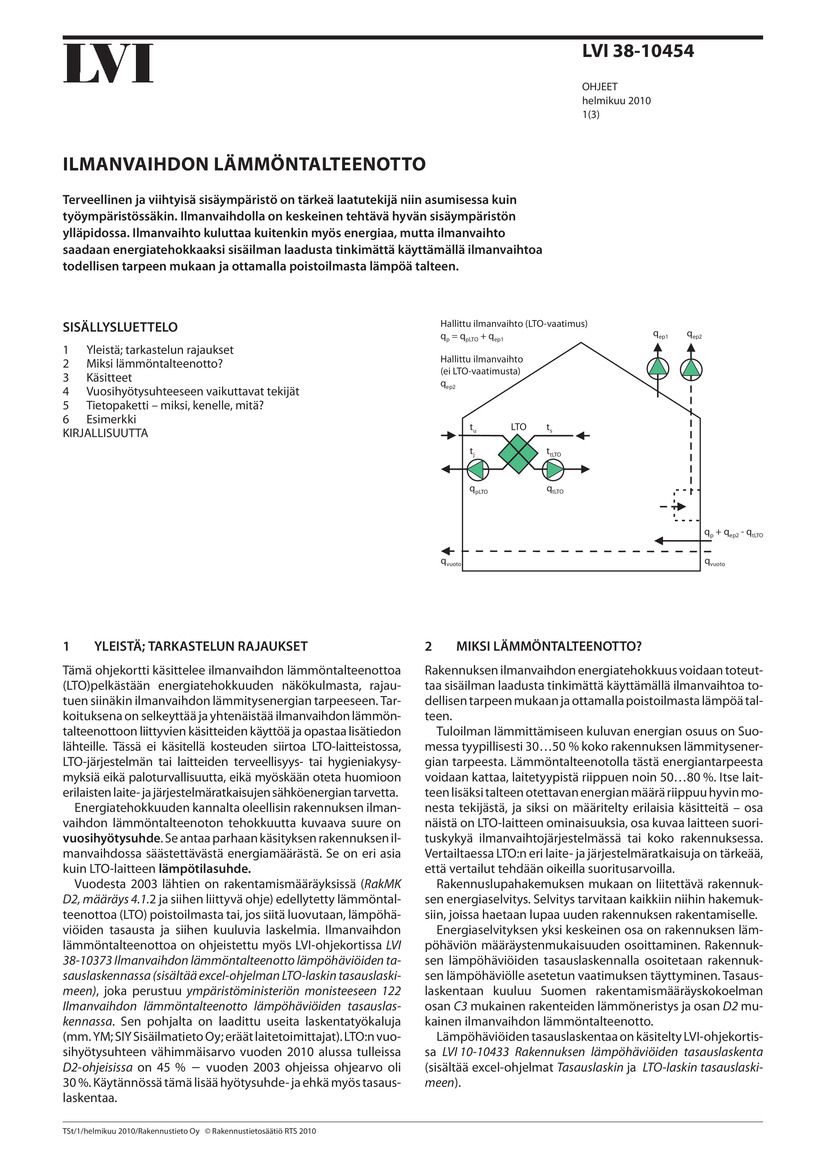 Tämä ohjekortti käsittelee ilmanvaihdon lämmöntalteenottoa (LTO) pelkästään energiatehokkuuden näkökulmasta, rajautuen siinäkin ilmanvaihdon lämmitysenergian tarpeeseen. Tarkoituksena on selkeyttää ja yhtenäistää ilmanvaihdon lämmöntalteenottoon liittyvien käsitteiden käyttöä ja opastaa lisätiedon lähteille. Tässä ei käsitellä kosteuden siirtoa LTO-laitteistossa, LTO-järjestelmän tai laitteiden terveellisyys- tai hygieniakysymyksiä eikä paloturvallisuutta, eikä myöskään oteta huomioon erilaisten laite- ja järjestelmäratkaisujen sähköenergian tarvetta.