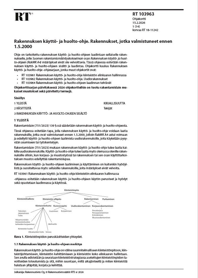 1. RT 103961 Rakennuksen käyttö- ja huolto-ohje kiinteistön elinkaaren hallinnassa
