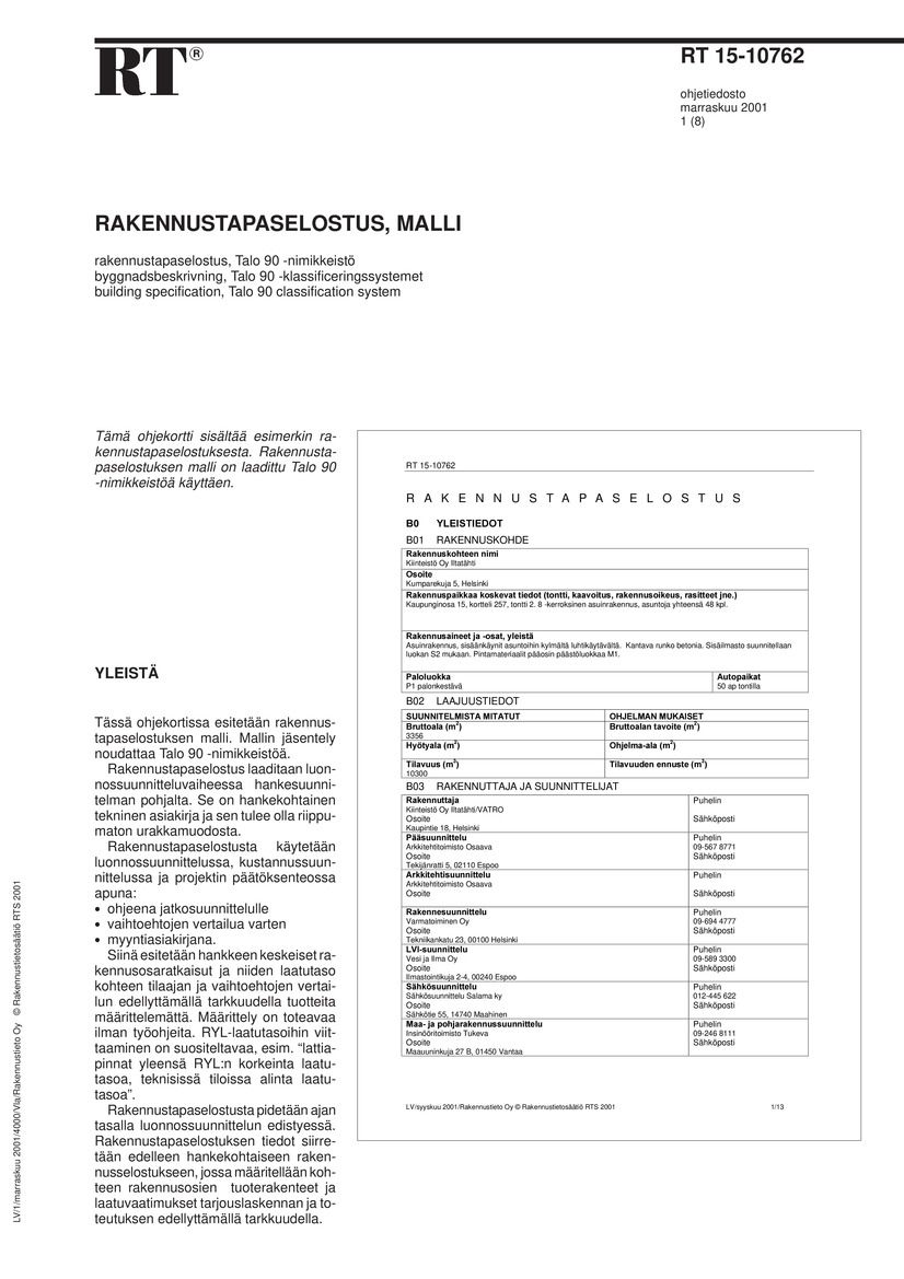 RT 15-10762, Rakennustapaselostus Talo 90 -nimikkeistö, malli
