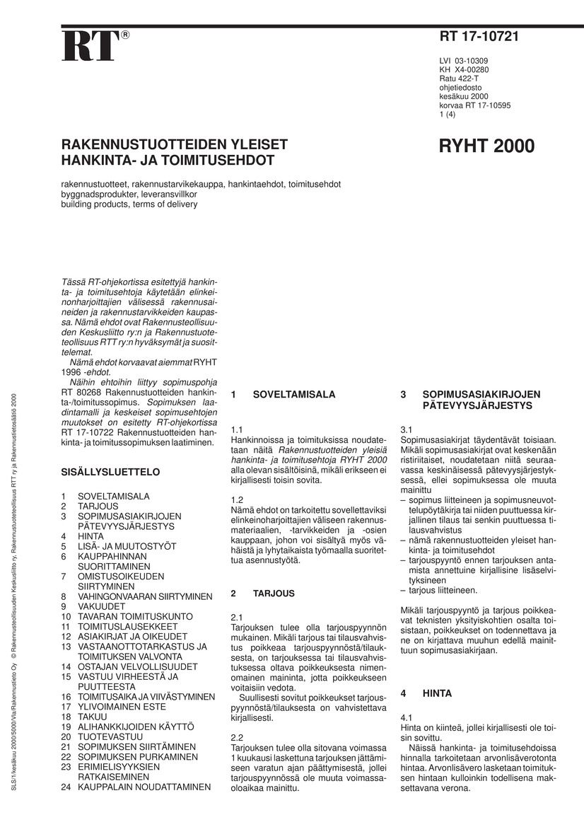 RT 17-10721, Rakennustuotteiden yleiset hankinta- ja toimitusehdot RYHT 2000