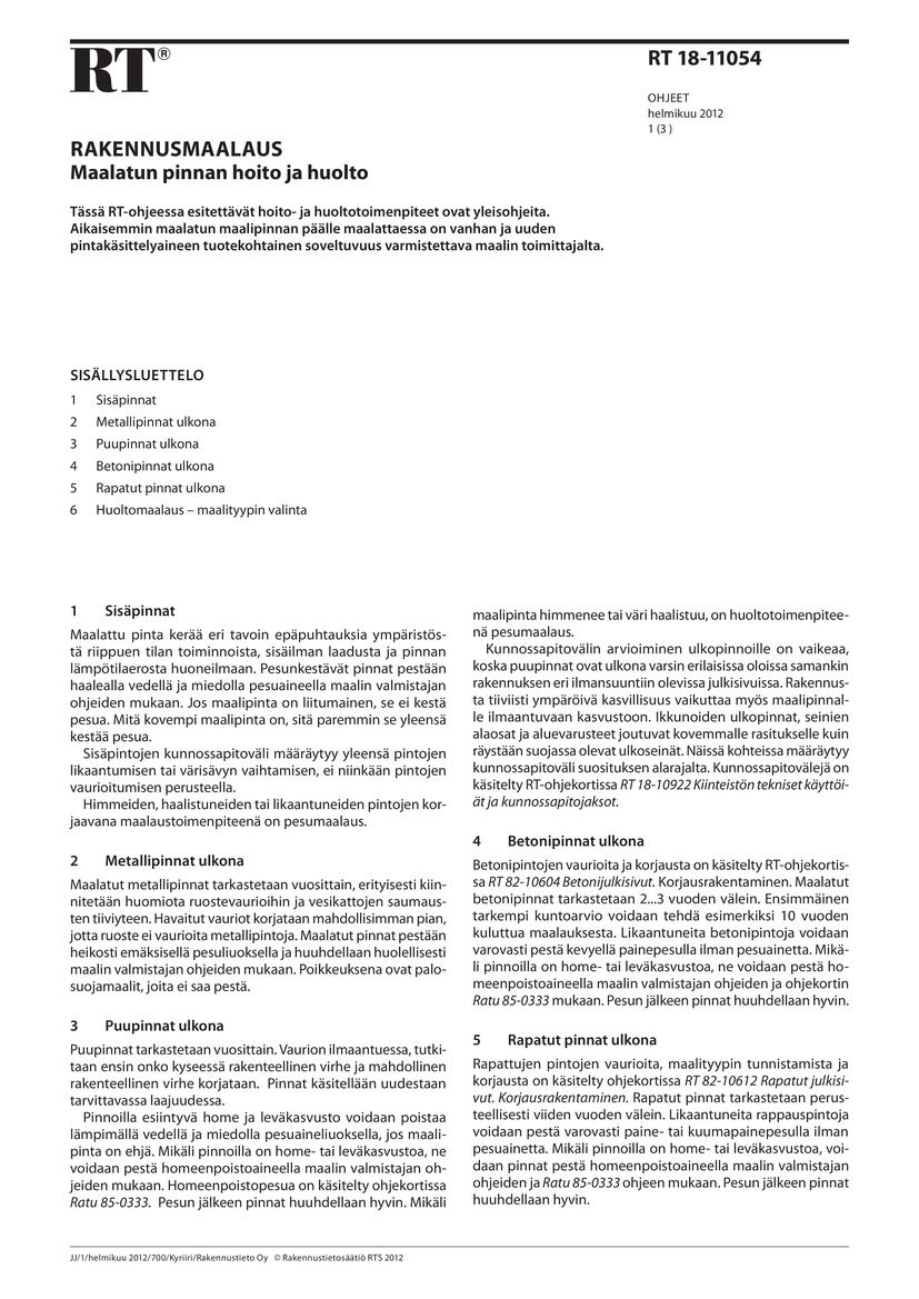 RT 18-11054, Rakennusmaalaus. Maalatun pinnan hoito ja huolto