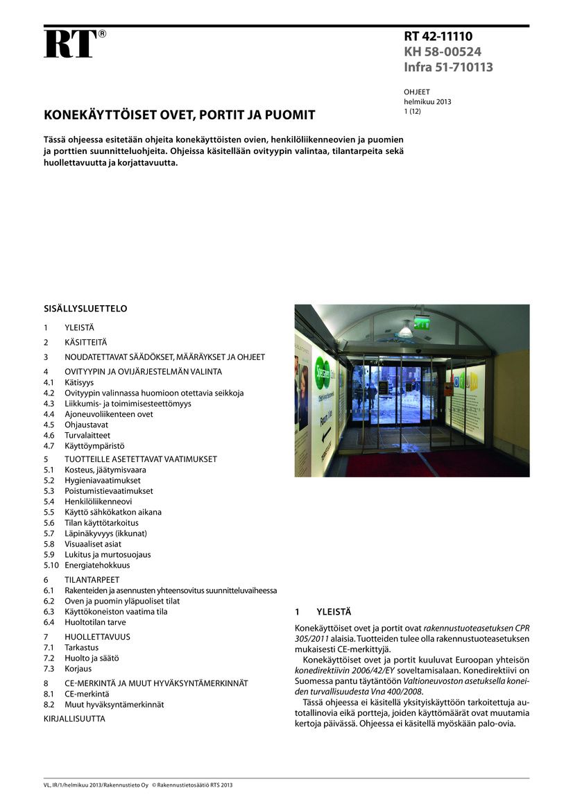 RT 42-11110, Konekäyttöiset ovet, portit ja puomit