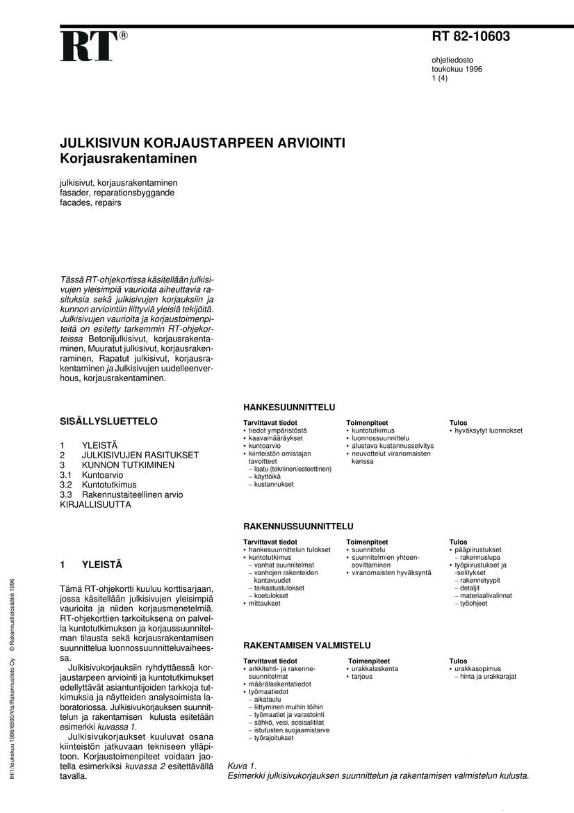 RT 82-10603, Julkisivun korjaustarpeen arviointi. Korjausrakentaminen