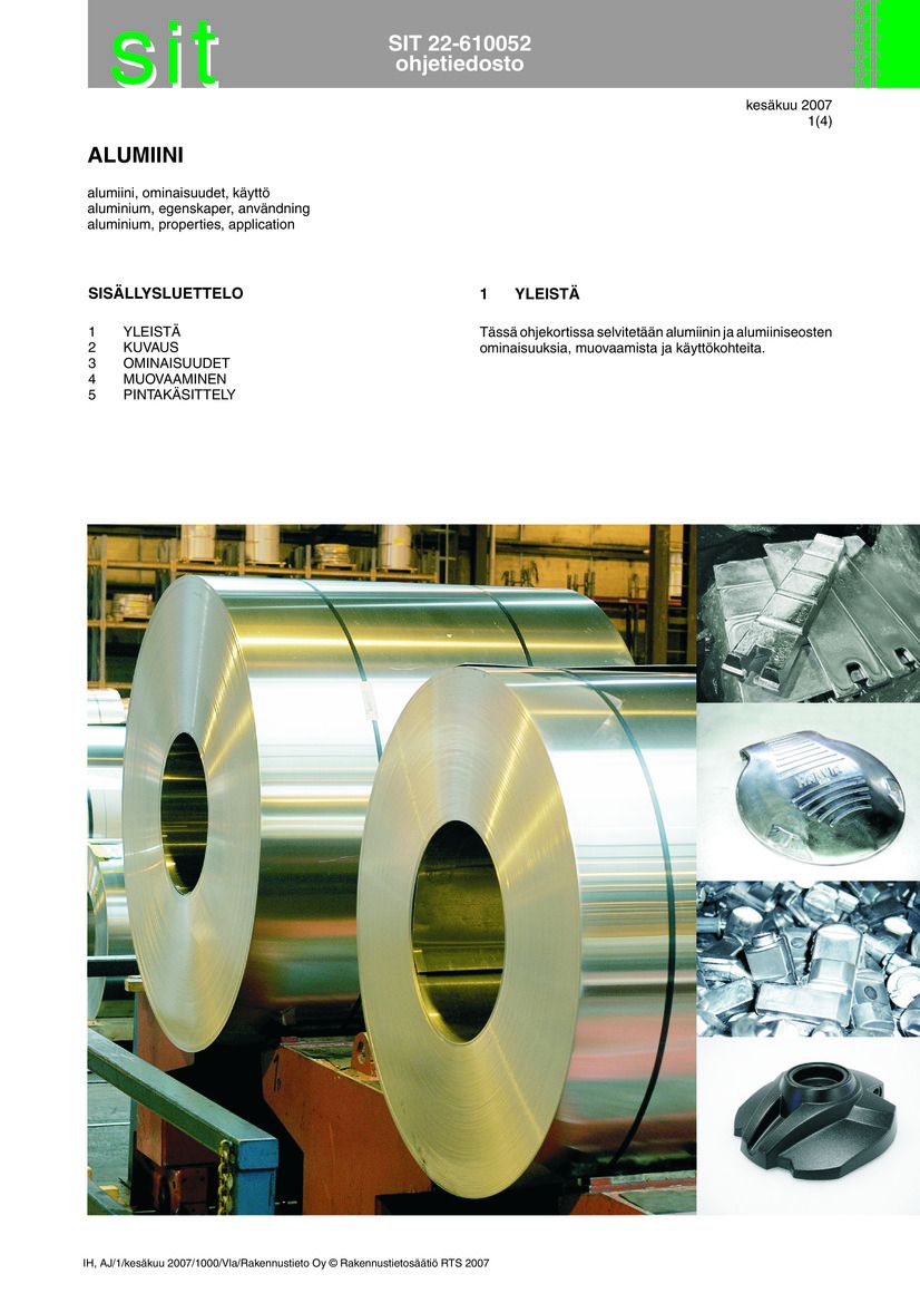Tässä ohjeessa selvitetään alumiinin ja alumiiniseosten ominaisuuksia, muovaamista ja käyttökohteita.