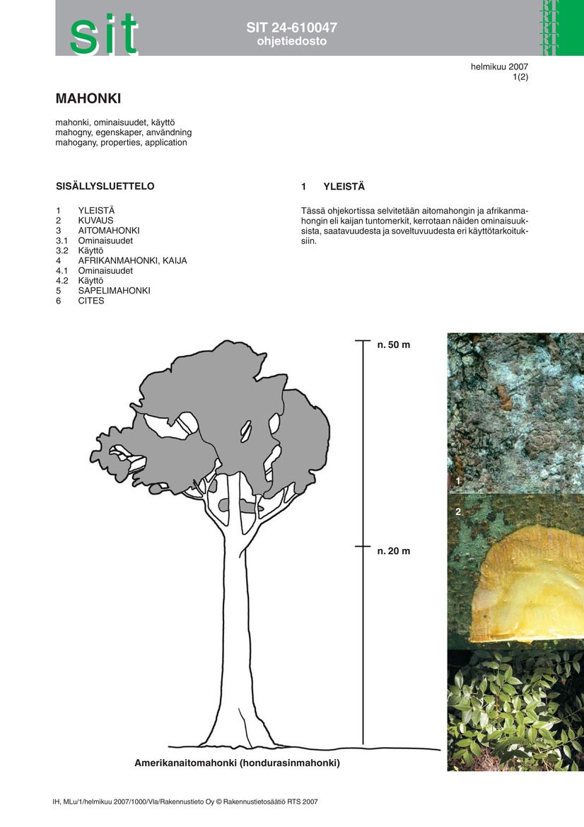 Alunperin laivanrakennukseen käytetty mahonki tuotiin Amerikasta Eurooppaan 1600-luvun alussa. Nykyisin mahongeiksi puutavarakaupassa kutsutaan toista sataa eri puulajia, jotka kuuluvat eri sukuihin ja ovat ominaisuuksiltaan hyvin erilaisia. Mahongista kertovassa ohjekortissa kerrotaan aitomahongista ja afrikanmahongista eli kaijasta ja selvitetään näiden tuntomerkit. Ohjeessa kerrotaan lisäksi näiden käytöstä, ominaisuuksista ja saatavuudesta sekä soveltuvuudesta eri käyttötarkoituksiin. Kortti kertoo lyhyesti myös CITES-sopimuksesta, jolla pyritään suojelemaan uhanalaisia lajeja kansainväliseltä kaupalta.